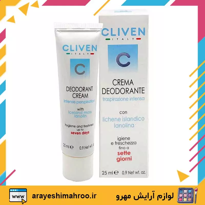 مدل : دئودورانت ٧ روزه حجم 25 میل Cliven 7 Days Deodorant Cream for Intense Perspiration 25 ml